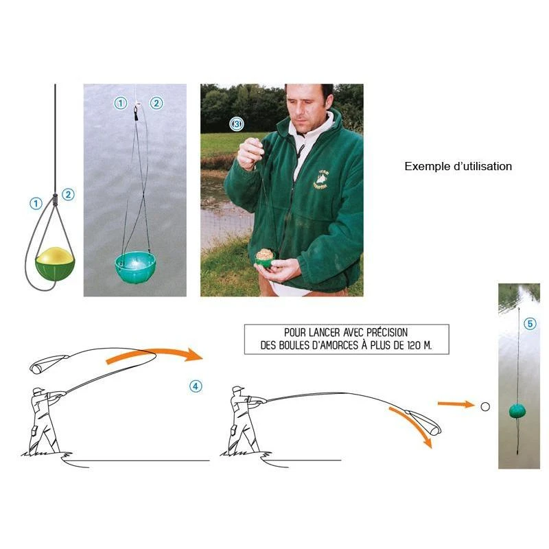 Pour lancer avec précision des boules d’amorces à plus de 120 m.